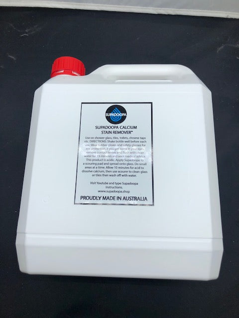 Couldn't load pickup availability Discover the power of SUPADOOPA, a highly effective cleaning solution formulated with an acidic blend and a fine abrasive for tackling mineral deposits and soap scum on various surfaces. Our innovative formula harnesses the acidic properties to break down and dissolve these stubborn residues, making them a breeze to wipe away. What sets SUPADOOPA apart is the inclusion of a very fine abrasive that delicately lifts and dislodges the buildup without causing any surface damage or scratching. This unique synergy of acid and abrasive ensures a deep and thorough cleaning process, effectively penetrating stubborn deposits and leaving surfaces gleaming and immaculate. With SUPADOOPA, you can achieve outstanding results with minimal effort, effortlessly restoring the original allure of your surfaces while reducing the need for strenuous scrubbing or harsh chemicals. Please note that while SUPADOOPA works wonders on most surfaces, there are instances where glass restoration may not be achievable. Extended exposure to harsh conditions or neglect can lead to irreversible etching, making it difficult to fully restore the glass to its original condition Discover the power of SUPADOOPA, a highly effective cleaning solution formulated with an acidic blend and a fine abrasive for tackling mineral deposits and soap scum on various surfaces. Our innovative formula harnesses the acidic properties to break down and dissolve these stubborn residues, making them a breeze to wipe away. What sets SUPADOOPA apart is the inclusion of a very fine abrasive that delicately lifts and dislodges the buildup without causing any surface damage or scratching. This unique synergy of acid and abrasive ensures a deep and thorough cleaning process, effectively penetrating stubborn deposits and leaving surfaces gleaming and immaculate. With SUPADOOPA, you can achieve outstanding results with minimal effort, effortlessly restoring the original allure of your surfaces while reducing the need for strenuous scrubbing or harsh chemicals. Please note that while SUPADOOPA works wonders on most surfaces, there are instances where glass restoration may not be achievable. Extended exposure to harsh conditions or neglect can lead to irreversible etching, making it difficult to fully restore the glass to its original condition Shipping Costs: Origin of Shipment: All orders are dispatched from the Gold Coast, Queensland, ensuring quick and efficient delivery. Preferred Shipping Partner: We exclusively partner with Australia Post Parcel Post for reliable and timely deliveries. Swift Shipping and Delivery: Your order will be processed and dispatched within 24 hours, ensuring a quick turnaround time. Quick Transit Times: Once your order is on its way, anticipate lightning-fast delivery times. With an estimated 3-6 business days for delivery within Australia, you'll have your package in no time. Plus, you'll receive a tracking number as soon as your order is shipped, providing you with an accurate delivery estimate for your specific address. Local Pickup: You can buy SUPADOOPA in person at 56 Recreation drive, Tweed Heads, NSW 2485. Only 500ml is available. If, for any reason, you find yourself dissatisfied with SUPADOOPA, we will extend a full 100% refund to you.